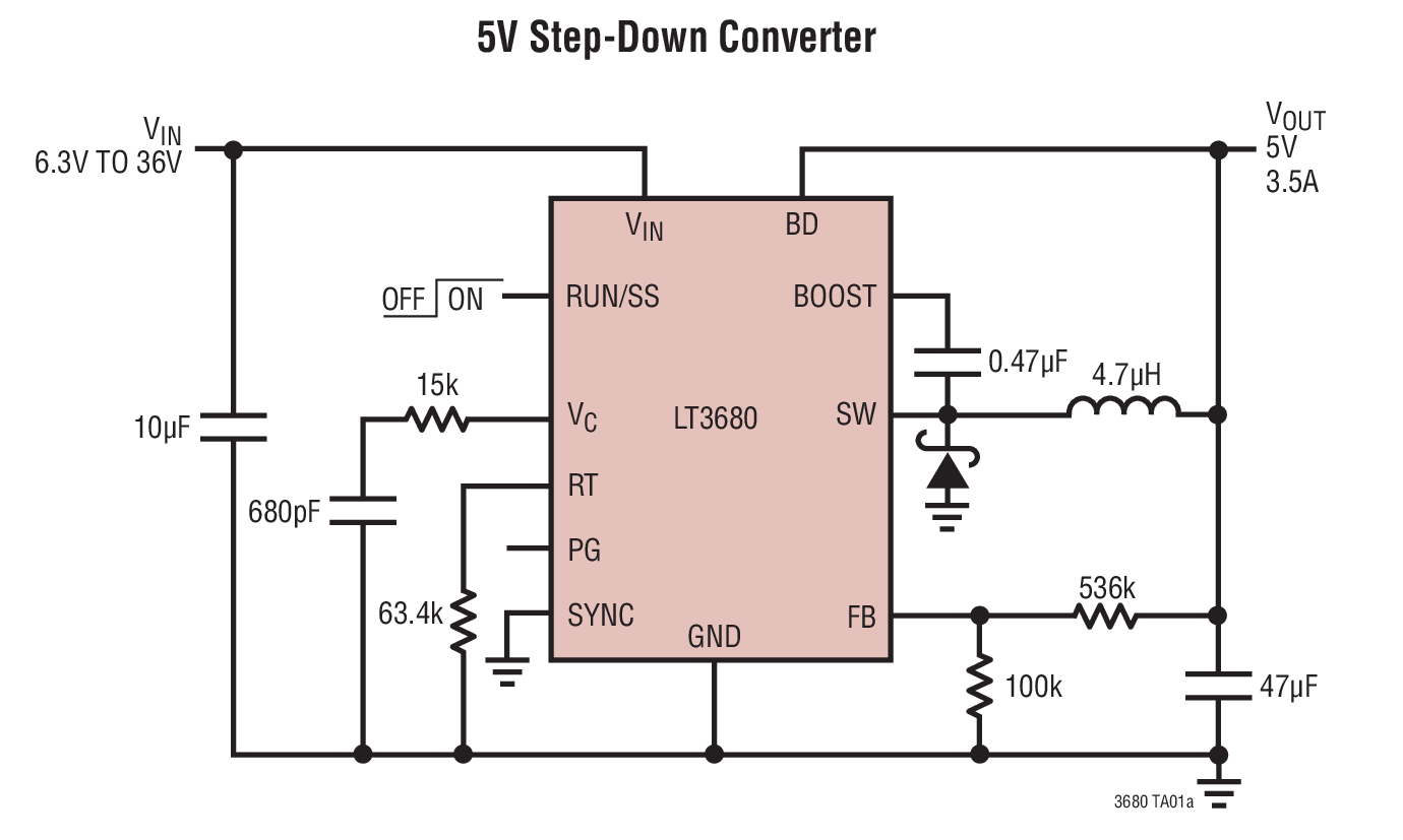 | DC1149A | LT3680EMSE Demo Board | 6.3V ≤ VIN ≤ 36V, VOUT = 5V @ 3.5A | $125.00 |