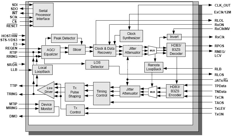 - On chip B3ZS/HDB3 encoder and decoder that can be either enabled or disabled