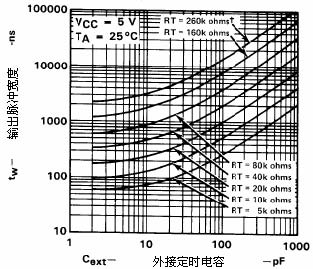 输出脉冲宽度基本上是外接电容和定时电阻值确定。