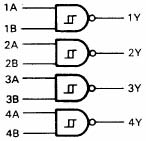 54S132 / 74S132 典型参数:tpd=8ns Pd=45mW/每门