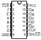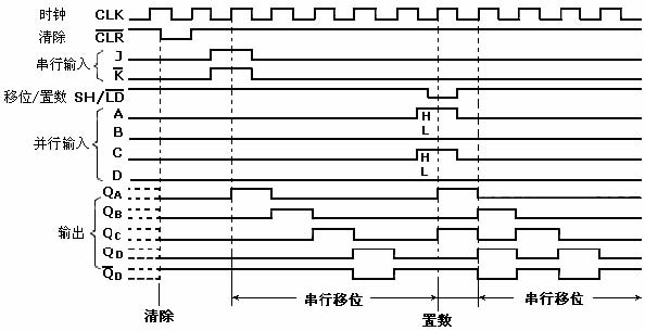 当移位/置数控制输入为高电平时,同步地完成移位。这种串行方式的数据是在 J—