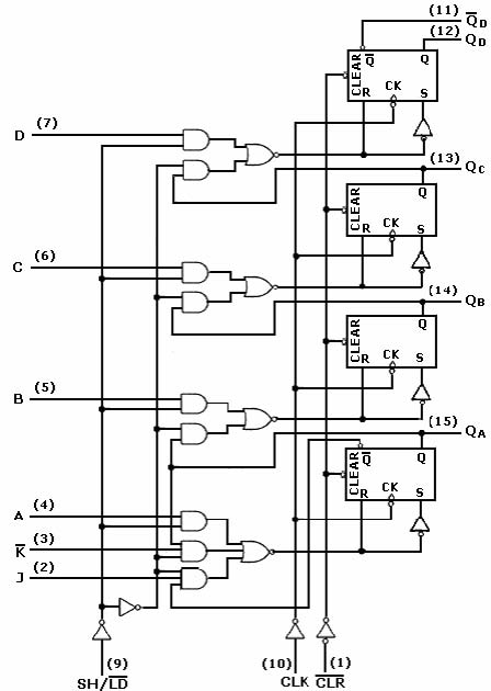 串行输入、移位/置数控制输入和无条件直接清除。全部输入都加有缓冲器,以降低对输入驱动的要求,电路有两种操作模式: