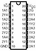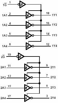 这种八缓冲器和线驱动器是为提高三态输出存储地址驱动器、时钟驱动器和总线定向接收器和发射器的性能和集成度而特意设计的。此电路的特点是,扇出高,扇入好,噪声容限高(400mV)。