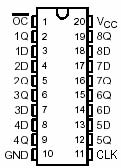 时钟线上的施密特触发缓冲输入将简化系统设计,因为输入滞后作用使交流和直流抗扰度一般提高 400mV。缓冲输出的控制输入将使八个输出处于正常状态(高电平或低电平)或处于高阻状态。在高阻态下,输出既不能有效地给总线加负载,也不能有效地驱动总线。