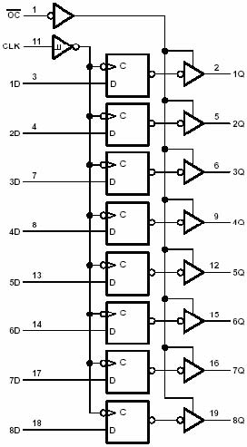 S374的八个触发器是边沿触发 D型触发器。在时钟的正跳动,Q输出将处于 D输入端已建立的逻辑状态。