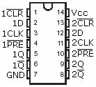 54S74 / 74S74 典型参数:f工作频率=110Hz Pd=75mW/每触发器