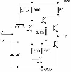 54S00 / 74S00 典型参数:tpd=3ns Pd=19mW/每门