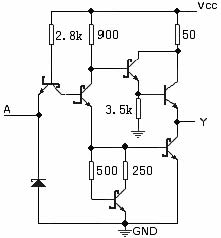 54S04 / 74S04 典型参数: tpd=3ns Pd=19mW/每门