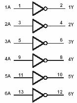 54S05 / 74S05 典型参数:tpd=5ns Pd=17.5mW/每门