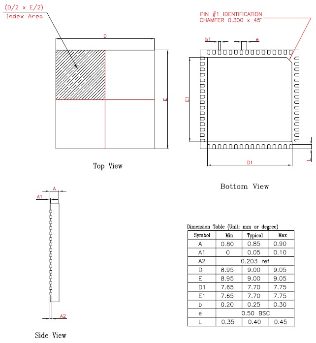 - 9mm x 9mm 64-pin QFN Package with 0.5mm pitch or 14mm x 14mm 64-pin Low Profile QFP Package with 0.8mm pitch