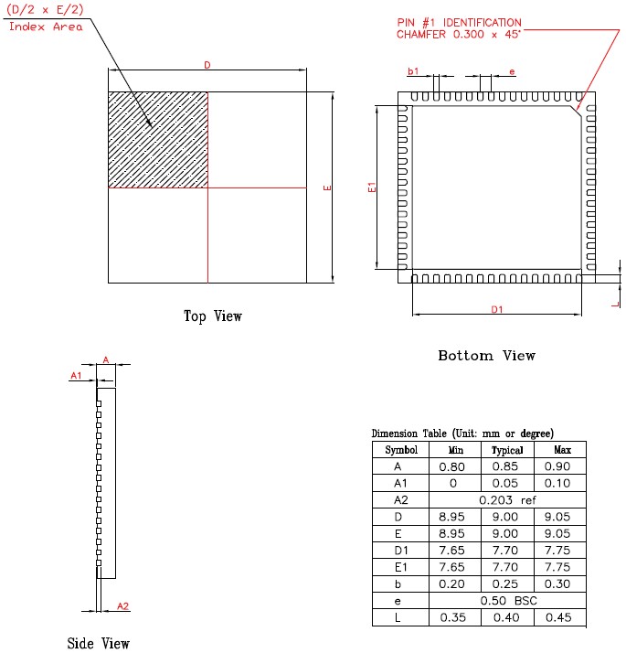- 9mm x 9mm 64-pin QFN Package with 0.5mm pitch or 14mm x 14mm 64-pin Low Profile QFP Package with 0.8mm pitch