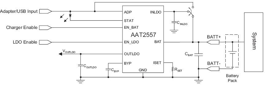 AAT2557 500mA Battery Charger and 300mA LDO Regulator for Portable Systems