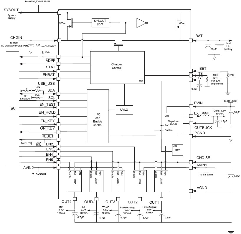 - Noise: 50μVrms for LDO3, LDO4, and LDO5