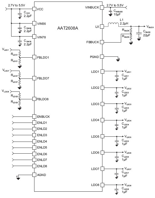 AAT2608A Eight-Channel LDO with DC/DC Converter