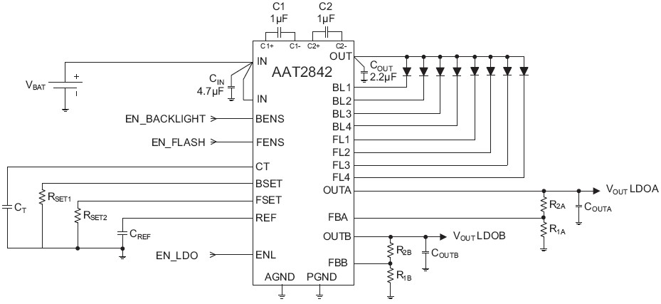 with S2CwireTM Control and Dual LDO for Backlight and Flash