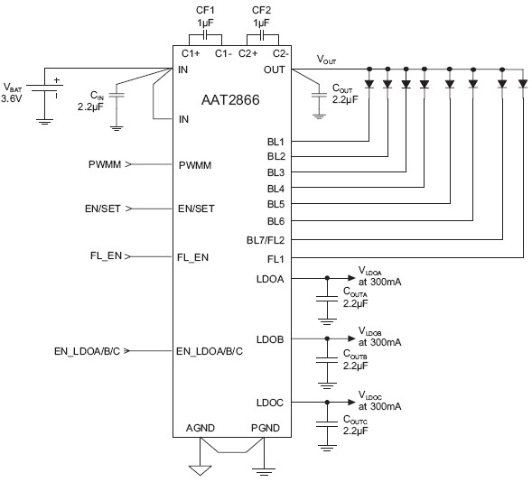 AAT2866 Backlight LED Driver and Multiple LDO Lighting Management Unit