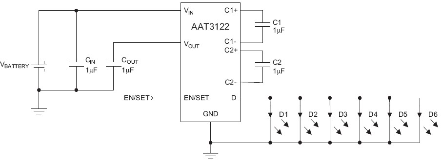 AAT3122 High Efficiency 1X/1.5X Fractional Charge Pump for White LED Applications