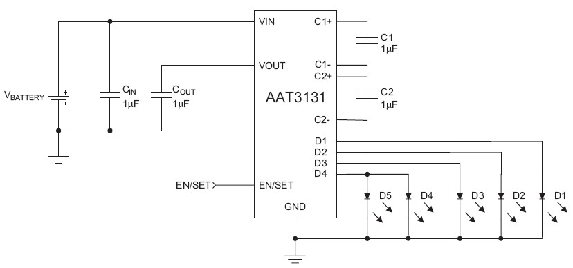 AAT3131 High Efficiency 1X/1.5X Fractional Charge Pump for White LED Applications