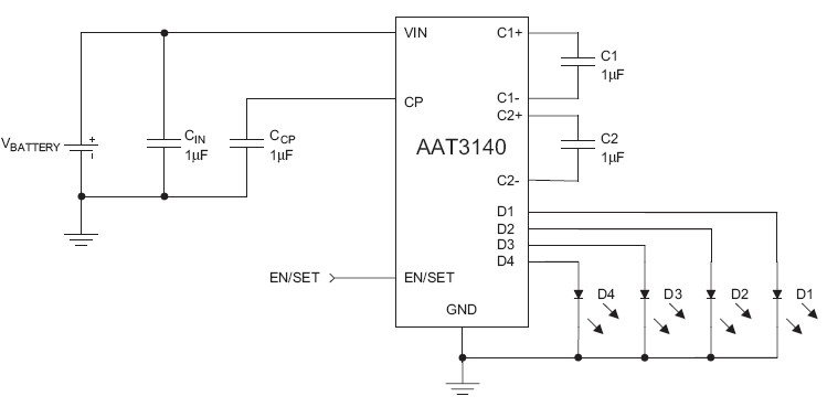 AAT3140 High Efficiency 1X/1.5X Fractional Charge Pump for White LED Applications
