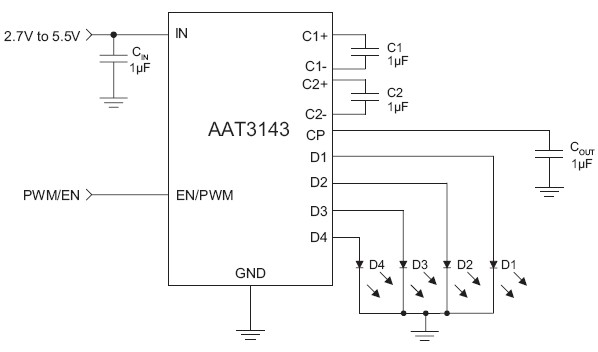 AAT3143 High Efficiency 1X/1.5X/2X Charge Pumpwith PWM Control for White LED Applications