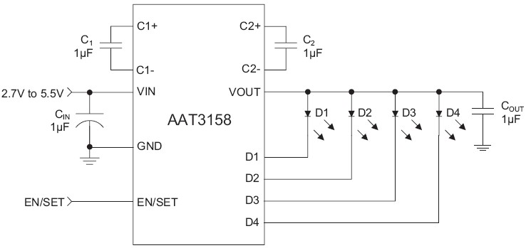 AAT3158 High Efficiency 1X/1.5X/2X Charge Pump for White LED Applications