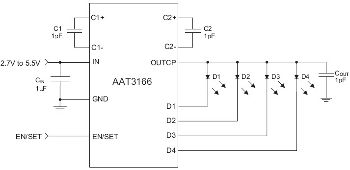 AAT3166 High Efficiency 1X/1.5X/2X Charge Pump for White LED Applications