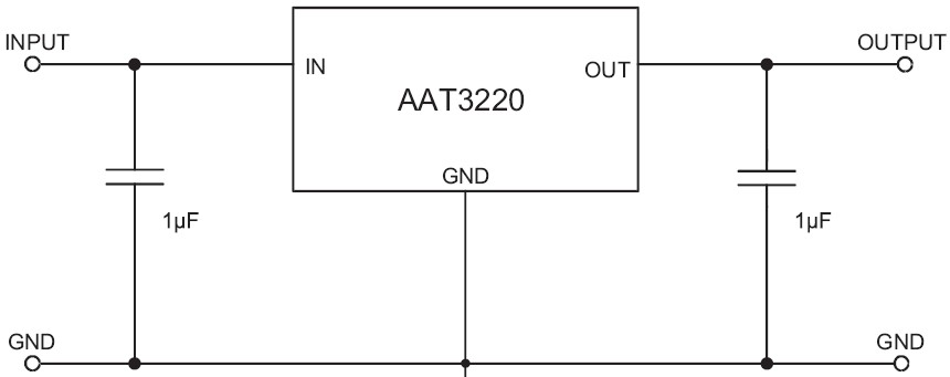 The AAT3220 PowerLinear NanoPower low dropout (LDO) linear regulator is ideal for portable applications where extended battery life is critical. This device features extremely low quiescent current, typically 1.1μA. Dropout voltage is also very low, typically less than 225mV at the maximum output current of 150mA. The AAT3220 has output short-circuit and over-current protection. In addition, the device also has an over-temperature protection circuit which will shut down the LDO regulator during extended over-current events. The AAT3220 is available in a Pb-free, space-saving SC59 package. The device is rated over the -40°C to +85°C temperature range. Since only a small, 1μF ceramic output capacitor is required, often the only space used is that occupied by the AAT3220 itself. The AAT3220 is truly a compact and cost-effective voltage conversion solution. The AAT3221/2 are similar products for this application, especially when a shutdown mode is required for further power savings.