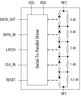 SKY12340-364LF 300 kHz – 2.0 GHz Five-Bit Digital Attenuator with Serial-to-Parallel Driver