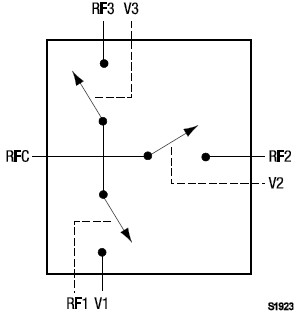 The SKY13309-370LF is a GaAs pHEMT Single-Pole, Triple-Throw (SP3T) antenna switch that operates in the 0.1 to 3.0 GHz frequency range. Switching between the antenna (RFC signal) and the RF1, RF2, and RF3 ports is accomplished with three control voltages. The low loss, high isolation, high linearity, small size, and low cost make this switch ideal for all WLAN and Bluetooth systems operating in the 2.4 to 2.5 GHz band.
