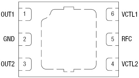 The SKY13335-381LF is a pHEMT GaAs FET I/C switch. The device features low insertion loss and positive voltage operation with very low DC power consumption. The switch is manufactured in a compact, low-cost 1.5 x 2.0 mm, 6-pin Micro Leadframe Package Dual (MLPD) package. The switch may be used in transmit/receive applications by connecting the RF common port (RFC, pin 5) to either the OUT1 or OUT2 port (pins 1 or 3, respectively) using a low-loss path (i.e., a positive voltage applied to either the VCTL1 or VCTL2 pins). The switch is a reflective short on the isolated port.