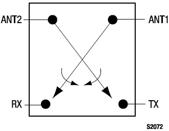The SKY13411-374LF is a pHEMT GaAs Double-Pole, Double-Throw (DPDT) switch designed for dual-band wireless LAN applications. The switch provides high linearity performance, low insertion loss, and high isolation. Switching is controlled by two voltage inputs (V1 and V2). Depending on the logic voltage level applied to the control pins, the ANT1 and ANT2 pins connect to one of two switched RF outputs (RX or TX) through a low insertion loss path while maintaining a high isolation path to the alternate port. The switch is manufactured in a compact, 1.5 x 1.5 mm, 6-pin exposed pad plastic Micro Leadframe Package Dual (MLPD) package.