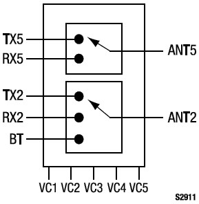 - SP3T (2.5 GHz) and SPDT (5.0 GHz) switches with Bluetooth® capability