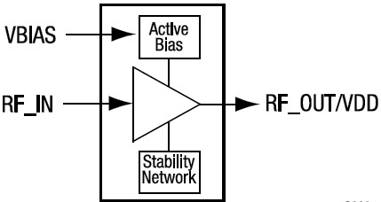The SKY67013-396LF is a GaAs, pHEMT Low-Noise Amplifier (LNA) with an integrated active bias. The advanced GaAs pHEMT enhancement mode process provides excellent return loss, low noise, and high linearity. The device offers the ability to externally adjust the supply current. The supply voltage is applied to the RF-OUT/VDD pin through an RF choke inductor. The VBIAS pin should be connected to the RF_OUT/VDD pin through an external resistor to control the supply current. Both RF_OUT/VDD and RF_IN pins should be DC blocked to ensure proper operation. The SKY67013-396LF is manufactured in a compact, 2 x 2 mm, 8-pin Dual Flat No-Lead (DFN) package. A functional block