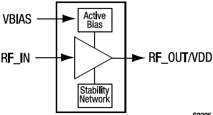 The SKY67014-396LF is a GaAs, pHEMT Low-Noise Amplifier (LNA) with an integrated active bias. The advanced GaAs pHEMT enhancement mode process provides excellent return loss, low noise, and high linearity. The device offers the ability to externally adjust the supply current. The supply voltage is applied to the RF-OUT/VDD pin through an RF choke inductor. The VBIAS pin should be connected to the RF_OUT/VDD pin through an external resistor to control the supply current. Both RF_OUT/VDD and RF_IN pins should be DC blocked to ensure proper operation. The SKY67014-396LF is manufactured in a compact, 2 x 2 mm, 8-pin Dual Flat No-Lead (DFN) package. A functional block