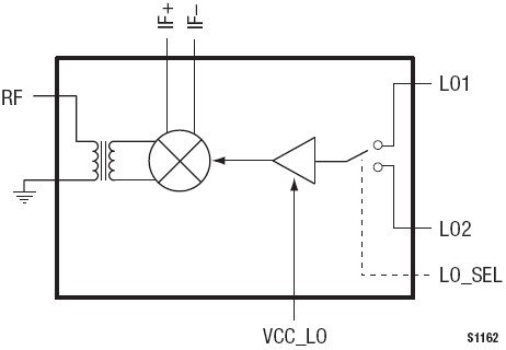 - On-chip SPDT LO switch (greater than 40 dB LO-to-LO isolation)