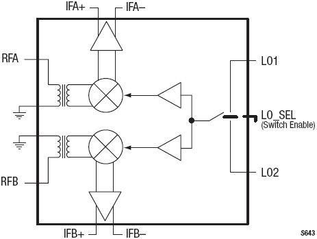 - On-chip SPDT LO switch (greater than 60 dB LO-to-LO isolation)