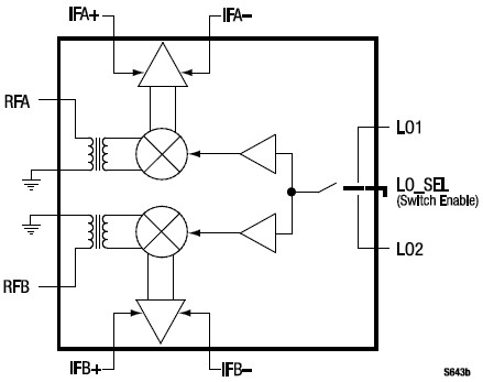 - On-chip SPDT LO switch (greater than 40 dB LO-to-LO isolation)
