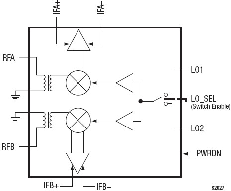 - On-chip SPDT LO switch (greater than 40 dB LO-to-LO isolation)