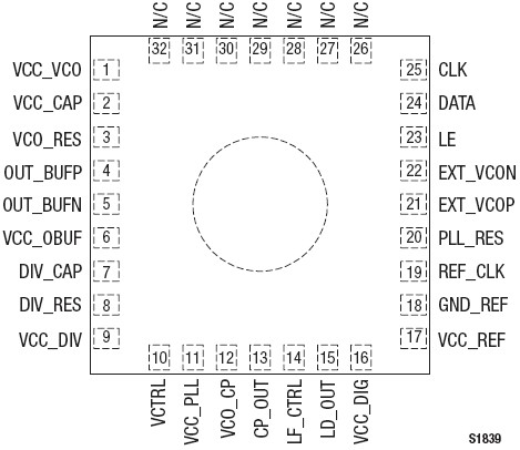 - Programmable VCO division by 1, 2, 3, 4, or 8