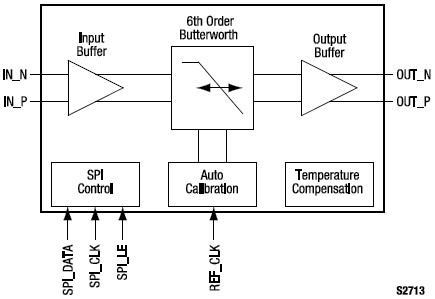 The SKY73201-364LF is a high-performance, programmable, monolithic, clock-referenced low-pass filter. It is configured as a 6th order Butterworth to provide extremely high stop-band isolation while maximizing pass-band flatness and minimizing group delay distortion.