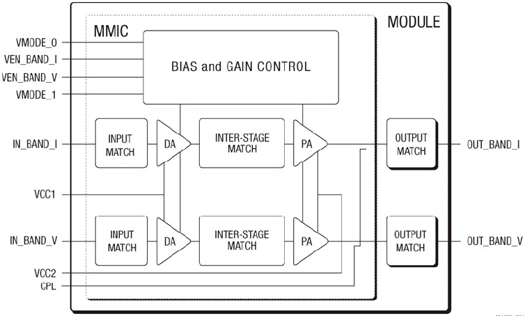 The SKY77195 Power Amplifier Module (PAM) is a fully matched, 14-pad, surface mount module developed for Wideband Code Division Multiple Access (WCDMA) applications. This small and efficient module packs full WCDMA Band I and Band VIII coverage into a single compact package. The SKY77195 meets the stringent spectral linearity requirements of WCDMA transmission, with high power added efficiency for power output to 27.5 dBm (Band I) and 28 dBm (Band VIII). The SKY77195 meets the stringent spectral linearity requirements of High Speed Downlink Packet Access (HSDPA) data transmission with high power added efficiency. A directional coupler is integrated into the module thus eliminating the need for any external coupler. The single Gallium Arsenide (GaAs) Microwave Monolithic Integrated Circuit (MMIC) contains all active circuitry in the module. The MMIC contains on-board bias circuitry, as well as input and interstage matching circuits. Output match into a 50-ohm load is realized off-chip within the module package to optimize efficiency and power performance. The SKY77195 PAM is manufactured with SKYWORKS’ InGaP GaAs Heterojunction Bipolar Transistor (HBT) BiFET process that provides for all positive voltage DC supply operation while maintaining high efficiency and good linearity. No VREF voltage is required. Power down is accomplished by setting the voltage on VENABLE to zero volts. No external supply side switch is needed as typical “off” leakage is a few microamperes with full primary voltage supplied from the battery.