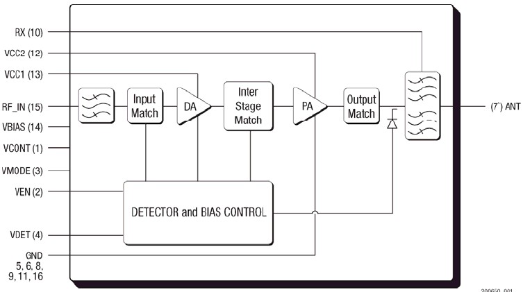 The SKY77435 Front-End Module (FEM) is a fully matched, 16-pad surface mount module developed for WCDMA applications. Small and efficient, this WCDMA FEM integrates the interstage filter, the input matching, the power amplifier, the output matching, the power detection, and the duplexer into a single 7 mm x 4 mm x 1.1 mm package. The SKY77435 meets the stringent spectral requirements of HSDPA standards up to 25.2 dBm output power. The FEM incorporates an InGaP HBT PA and contains circuitry to optimize power detector performance. Different control pads are available to enhance the performance of the FEM at different power levels. Integration of the RF front-end greatly simplifies the design of the handset radio as all critical matching between the interstage filter, PA, power detection, and duplexer is optimized within the module. By optimizing the efficiency of the InGaP HBT PA MMIC and reducing the RF loss between the integrated components, this FEM achieves current as low as 450 mA at maximum output power (25.2 dBm) that significantly improves the talk time of the WCDMA handset. This small package uses SKYWORKS’ low cost, multi-laminate substrate technology and is approximately half the size of individually packaged component solutions. The SKY77435 front-end module can save handset designers significant board space and design-cycle time.