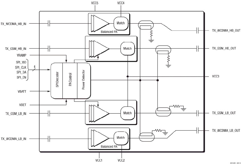 - Separate single-ended GSM and WCDMA inputs/outputs, all ACcoupled