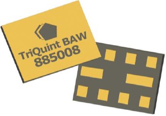 The TriQuint 885008 is a high-performance Bulk Acoustic Wave (BAW) notch filter designed to reject emissions in the WiFi bands, while passing both the 2.3 GHz and 2.6 GHz WiMAX / LTE / TD-LTE bands. The 885008 is specifically designed to enable coexistence of WiFi and 4G signals within the same device or in close proximity to one another. The part is specified to provide low loss in the entire USA WiMAX band (2496 - 2690 MHz) as well as LTE Bands 7 and 38. The filter also passes the 2.3GHz band: WiBro, WCS, Band 40 and the Indian 4G band. This part uses inexpensive packaging techniques to achieve an industry-leading 1.7 x 1.3 x .46 mm package. The filter exhibits excellent power handling capabilities. This part is referenced on multiple designs with the leading WiMAX chipset makers.