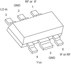 The TriQuint CMY210 is an all port, single-ended, general purpose up- and down-converter. It combines small conversion losses and excellent intermodulation characteristics with a low demand of LO and DC power. The internal level controlled LO buffer enables good performance over a wide range of LO level inputs. The mixer configuration allows RF or IF feed to either pin 1 or 6 and thus requires a frequency separation circuit on the printed circuit board.