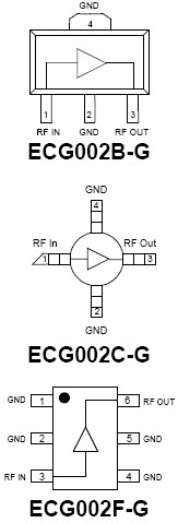 The TriQuint ECG002B-G is a general-purpose buffer amplifier that offers high dynamic range in a low-cost surface-mount package. At 1000 MHz, the ECG002B-G typically provides 20 dB of gain, +29 dBm Output IP3, and +15.5 dBm P1dB. The ECG002B-G consists of a Darlington-pair amplifier using the high reliability InGaP / GaAs HBT process technology and only requires DC-blocking capacitors, a bias resistor and an inductive RF choke for operation. The device is ideal for wireless applications and is available in low-cost, surface-mountable plastic lead-free / green / RoHS-compliant SOT-89 package. It is also available in a SOT-86 package as the ECG002C-G and a SOT-363 package as the ECG002F-G. All devices are 100% RF and DC tested. The broadband MMIC amplifier can be directly applied to various current and next generation wireless technologies such as GPRS, GSM, CDMA, and W-CDMA. In addition, the ECG002B-G will work for other various applications within the DC to 6 GHz frequency range such as CATV and mobile wireless.