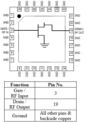 The TriQuint FP31QF-F is a high performance 2 Watt HFET (Heterostructure FET) in a low-cost lead-free / RoHS-compliant 28-pin 6x6 mm QFN (Quad Flatpack, No-Lead) surface-mount package. This device works optimally at a drain bias of +9 V and 450 mA to achieve +46 dBm output IP3 performance and an output power of +34 dBm at 1 dB compression. The device conforms to TriQuint's long history of producing high reliability and quality components. The FP31QF-F has an associated MTTF of a minimum of 100 years at a mounting temperature of 85°C. All devices are 100% RF and DC tested. The product is targeted for use as driver amplifiers for wireless infrastructure where high performance and high efficiency are required.