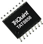 The TriQuint TAT8858 is a cost effective 75 ohm RFIC Amplifier designed for use in high gain 24 V CATV applications up to 1000 MHz. It works with readily available SMT baluns and transformers to provide a highly flexible low cost replacement for traditional hybrids. Gain of the TAT8858 may be easily adjusted by varying external components, allowing for a family of push-pull hybrid solutions to be developed from a single RFIC. The TAT8858 provides integrated linearization to improve the 3rd order distortion performance. The TAT8858 may be protected against transient surges with the TQP200002 and an output high pass filter network. The TAT8858 supports traditional 24 V and 12 V supply voltages. Bias current may be adjusted to suit particular requirements with standard or active biasing approaches.
