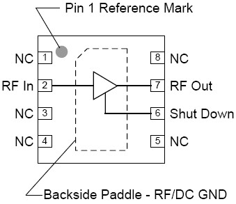 The TQP3M9035 is a high linearity low noise gain block amplifier in a low-cost surface-mount package. The LNA is internally matched and has the benefit of having high linearity while providing ultra low noise figure across a broad range of frequencies. This allows the device to be used in both receive and transmit chains for high performance systems. The amplifier uses a high performance E-pHEMT process and only requires an external RF choke and blocking/bypass capacitors for operation from a single +5V supply. The low noise amplifier integrates a shut-down biasing capability to allow for operation for TDD applications. The device is housed in a leadfree/green/RoHS-compliant industry-standard 2x2mm package.
