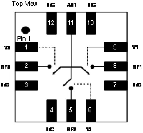 The TriQuint TQP4M3019 is a high power antenna switch in a single pole three throw (SP3T) configuration. The die utilizes TriQuint's PHEMT MMIC switch process to provide optimized cross-modulation performance for use in CDMA applications. PHEMT switches are a very low DC current replacement for classic PIN diode based switches. This product is ideally suited to applications where the antenna of a CDMA handset is to be routed to the Cellular duplexer, the PCS duplexer, AWS duplexer and the GPS receiver input. The design is symmetric and broadband allowing the user to assign cellular, PCS, AWS and GPS to ports RF1, RF2 or RF3 as desired.